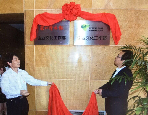 市委常委、宣传部长李小甘为深圳新闻网等四家媒体单位企业文化工作部揭牌授牌
