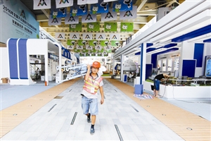 沿着广场及周边楼宇而设的主题展示区,展览总面积超过16000平方米,分为双创蓬勃发展、新技术、新产品、新模式、新业态、创新引领未来等6个主题展区,400米长的创业大街还将打造丰富多彩的双创项目及成果。记者看到,这里有众多“高大上”的重点创新成果展示,汇集全国最具示范性创新成果,如中国单轨轻型跨座式交通系统、北斗导航系统、深圳企业研发的无人船及应用平台等,各大参展单位的布展工作大多已进入收尾阶段。