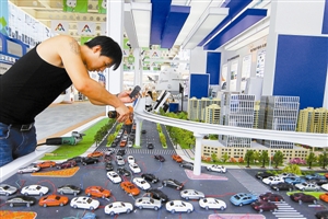 2016年全国大众创业万众创新活动周将于12日拉开序幕,昨日,记者提前探营。图为参展商正在调试即将展出的基点新概念车辆。