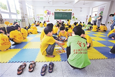 这是富士康探索关爱留守儿童公益模式的第3年,不同于捐物、支教需要社会不断地输血,“阳光朋辈”嵌入乡村学校的日常教育中,促进乡村“自我造血”。
