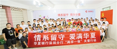 此次活动也是华夏银行深圳分行开展的“两学一做”实践活动。特别需要提到的是,参加活动的行员带着孩子,让下一代在奉献爱心的活动中接受爱国主义教育。