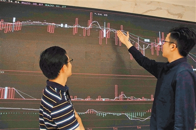 图为深圳排放权交易所工作人员在碳交易数据大屏幕前观察碳市走势。