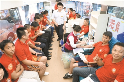 在深圳,无偿献血已经成为深圳人的一种自觉行动,有一支庞大、稳定的无偿献血志愿者群体,正是因为他们的爱心行动,有力地保障了临床用血。其中,潮汕人魏伟光、王少凯、林鹏就是其中的一分子,他们的献血次数分别达到了167次、122次和97次。昨日,这几位献血模范也活跃在活动现场,为献血活动贡献力量。