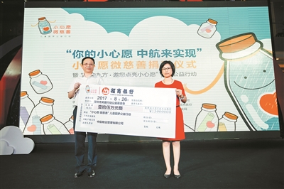 今年六一儿童节,项目联合深圳市关爱办、深圳市妇女联合会、深圳市关爱行动公益基金会、中航物业管理有限公司,共同启动“圆深圳孩子365个小心愿”——“小心愿·微慈善”儿童圆梦公益行动,聚焦城市困境儿童,计划1年时间实现365个孩子的小心愿。为了帮助孩子们圆梦,中航物业率先捐赠15万元,用于认领105个小心愿,并支持项目的执行开展。据中航物业管理有限公司副总经理邹民介绍,未来一年,中航物业将选择旗下3个项目开设心愿墙,全面展示孩子们的小心愿,为市民提供一个真实、贴近的随手公益渠道。同时,每个季度都将推出一场圆梦仪式,现场为孩子们实现小心愿。