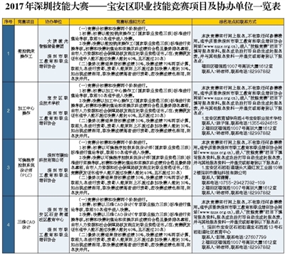 本届宝安区职业技能竞赛9月份期间处于报名阶段,10月至12月将展开技能大比武。据悉,本届宝安区职业技能竞赛设有4大竞赛项目,各工种前6名将被授予“宝安工匠”荣誉称号。