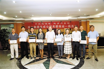 9月12日,香港美心集团、深圳天成第二场捐赠活动在深圳报业集团举行,深圳报业集团社委会委员、副总经理白俊仁代表以一线员工为主的来深建设者们感谢香港美心、深圳天成的关怀与厚爱,并表示会将这份爱传递到集团对口帮扶的河源市雅色村贫困户。