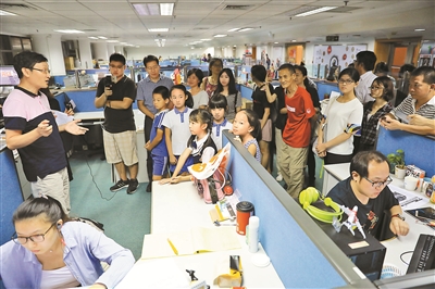 除了参观报纸的制作流程和参与深晚创意头版的制作过程,当晚参加活动的市民代表还体验了一把直播的乐趣。当晚,活动在深圳网易平台现场直播,参加活动的市民将自己写下的心得感受或者拍摄的现场照片发送到直播群参与直播,过了一把当记者的瘾。