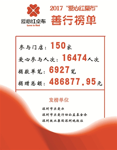 历时近一个月,由深圳市关爱办、深圳市关爱行动公益基金会、深圳晚报主办的第二届“爱心红桌布”公益行动缓缓落下帷幕,即将过去的9月注定将成为很多人心里最温暖的记忆。