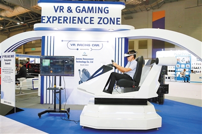 昨日,“环球资源消费电子展”在香港的亚洲国际博览馆举行。图为观众在体验VR新技术。