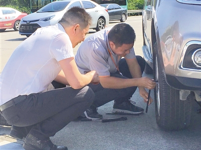 10月4日,大梅沙隧道口一辆车爆胎,为避免阻塞交通,交警迅速指引爆胎车辆缓慢驶到平安护航点,护航员迅速帮助车主处理。事后,车主十分感激:“我不是平安客户,原本打算开车回浙江,由于天气炎热,轮胎磨损严重,不幸发生爆胎事故。平安保险工作人员小高了解了我的情况后,在保证安全的情况下,迅速帮我更换轮胎。出门在外路遇善人,真是万分感谢。”
