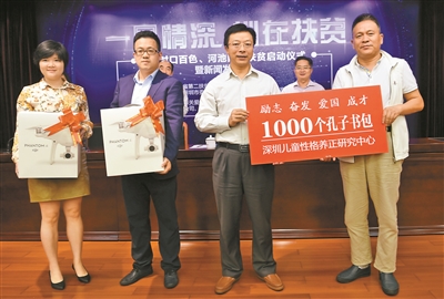 启动仪式现场,大疆创新科技有限公司向百色、河池捐赠了无人机,为革命老区提供现代科技支持;深圳市乐学乐园儿童性格养正研究中心也向百色贫困地区捐赠首批1000个爱心书包,为当地的教育扶贫、励志助学贡献自己的一份力量。
