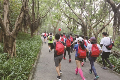 据悉,此次活动路线设计非常特别,可谓是一场深氧呼吸之旅。活动全程3.5公里,以笔架山公园东门舞场为起止点,参赛者身着统一服装,不计时、不竞速绕笔架山一周即可。跑步中,参赛者可以将笔架山秀丽的风景尽收眼底,穿梭在被绿色包围的公园中,体验最原生态的环境,呼吸最新鲜的空气,享受阳光的沐浴。